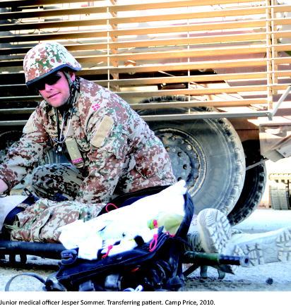 Health-care personnel including military physicians are deployed along with the troops. In Denmark there are no military hospitals, and the physicians who are sent to Afghanistan as junior medical officers (JMOs) are trained at public hospitals after completing medical school. Subsequently, they participate in a mandatory JMO course of five months’ duration organized by the Danish Armed Forces Health Service (DAFHS). The course includes training in basic military skills, sports medicine, pre-hospital trauma life support, diving medicine, aviation medicine and traumatology surgery.