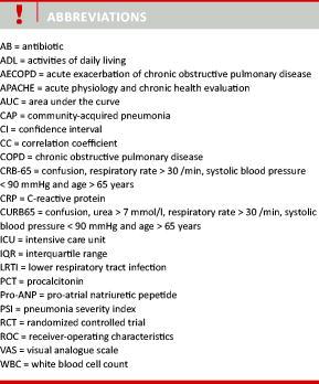 Procalcitonin (PCT) was discovered in 1975 [1] after isolation of the pro-hormone from chickens. Its clinical potential remained unknown until 1993, when Assicot et al [2] found that PCT levels were markedly raised in children with severe systemic bacterial infections compared with non-infected children and children with local or viral infections. Furthermore, PCT levels tended to drop rapidly following antibiotic (AB) treatment. Several studies have subsequently confirmed the relation between inflammation and PCT. Much research during the past decade has focused on the role of PCT in community-acquired pneumonia (CAP). Progress in this field has been rapid and is the focus of this review.