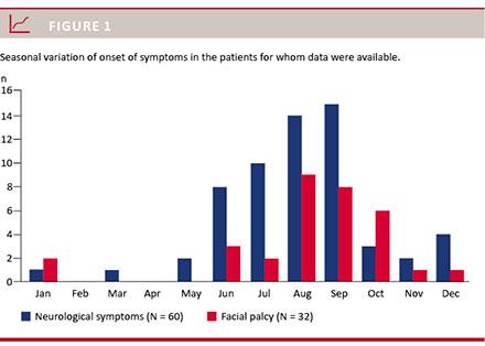 Conclusion: In this study, winter as a low-risk season was not a reliable factor in ruling out LNB. This finding may be relevant when investigating the cause of facial palsy and radicular symptoms.
