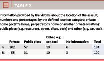 Location of the assault: More than half (55%) of the RAS occurred in private homes (Table 2). One victim reported that the RAS occurred both in a car and in a private home.
