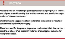 Conclusion: Short-term results suggest that SPLS for rectal disease is feasible and safe with an acceptable complication rate when performed by experienced surgeons in selected patients. Oncological safety and the possible benefits remain to be proven. Future rectal SPLS procedures should be performed in a protocolled set-up.