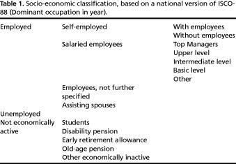 Classification of socioeconomic status (SES) was based on the annual registration of income, social benefits, employer, occupation, level of education, and age, these data are collected from tax returns and public registers [15].