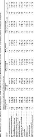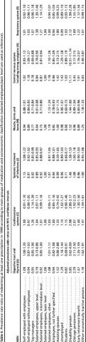 Second, for each socioeconomic group, weighted averages of prescription proportions were computed. The weights were based upon the distribution of age and gender in the entire study population. The formula of standard errors used for estimating 95% confidence intervals (CI) was based upon basic probability calculus. The variance of a weighted average of proportions is itself a weighted average of the variances of the separate proportions. The variance weights are the corresponding fixed population weights squared. We used logistic regression analysis to obtain relative prevalence estimates for consumption of specific types of medication using "salaried employees, basic level" as the reference group.