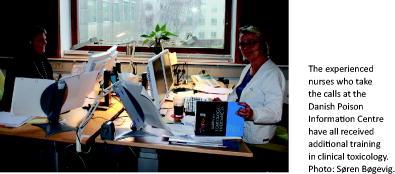 Telephone calls to the DPIC are answered by experienced nurses who have all received additional training in clinical toxicology. The main backup is provided by physicians specialized in anaesthesiology, occupational medicine or clinical pharmacology, and by pharmacists. The physicians and pharmacists maintain, update and prepare guidelines and action cards on specific poisonings. Further information sources include computerized databases; POISINDEX [2], guidelines from the Swedish Poison Information Centre (Giftinformationscentralen, GIC), textbooks and journals.