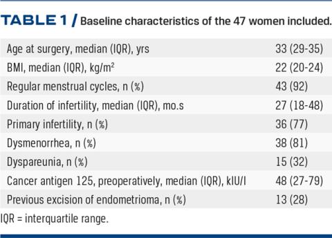 This was a single-centre retrospective study performed at a national referral centre for endometriosis, Rigshospitalet, Denmark, from 2009 to 2012. In this period, all infertile women undergoing surgery due to endometriosis-related pain and/or large endometriomas were routinely offered long-term GnRHa and ART, and were therefore candidates for study inclusion. Follow-up was performed in January 2019, 6-10 years after surgery, as part of internal treatment quality assurance. The study included 47 women meeting the following inclusion criteria: I) indication for endometriosis surgery, II) primary or secondary infertility, III) stage III-IV endometriosis according to the Revised American Society for Reproductive Medicine classification of endometriosis [10], IV) radical endometriosis surgery, including stripping of at least one endometrioma, V) histologically confirmed diagnosis, VI) indication for treatment with ART, VII) age 20-39 years and VIII) 18 kg/m2 < BMI < 35 kg/m2. Exclusion criteria: I) GnRHa treatment before surgery and II) medical conditions contraindicating participation. No women were excluded due to discontinuation of treatment or loss to follow-up.