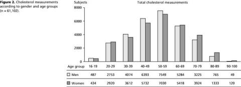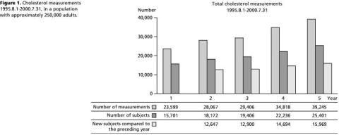Methodology: Population based register survey, based on the electronic laboratory information system (LIS) as primary data source. All lipid measurements from both hospitals and primary health care, were included for a five-year period (1995.8.1.-2000.7.31.), and civil registration number was used to separate measurements from subjects living in an area comprising 248,475 adult inhabitants.