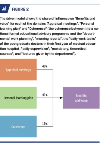 The driver analysis showed that appraisal meetings and personal learning plans had by far the highest influence on the overall benefits and value of the NFAP. Surprisingly, the following had only a limited influence: coherence of the NFAP with work planning, morning reports, lectures and daily supervision provided by the department plus the PGY1 doctors’ own daily work tasks and mandatory theoretical courses. This might, in part, be due to the PGY1 doctors understanding of the NFAP as an isolated educational initiative that neither has nor should be coherent with their everyday clinical practice or mandatory theoretical courses - maybe influenced by the ongoing discourse about production versus education. The reasons for the lack of coherence were not investigated in this study, and we found no literature shedding light on this issue.