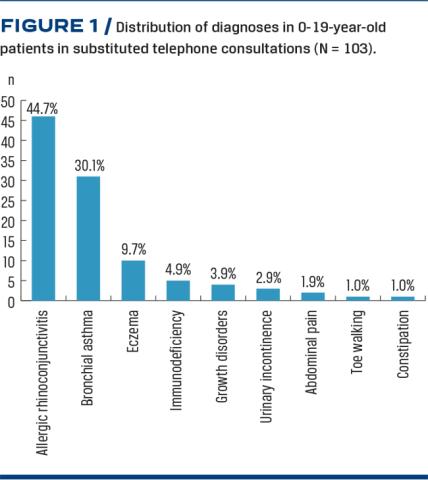 Results: During the observation period, the clinic had 499 scheduled face-to-face appointments and 112 (22.4%) substitute telephone consultations. A total of 103 families participated in a telephone interview representing 87 (84.5%) children with atopic diseases and 16 (15.5%) with other conditions. A total of 100 (97.0%) of the families agreed or strongly agreed that they felt good about being offered a substitute telephone consultation; 14 (13.6%) said that a telephone consultation was not the best option, whereas 89 (80.4%) would not have preferred a face-to-face consultation; 98 (95.1%) felt that the telephone consultation was useful to them.