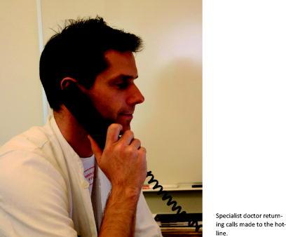 Telephone hotlines are a well-known phenomenon in addiction counselling, suicide prevention and domestic violence prevention and are often based on the work of volunteers and private organizations (Danish examples include Kræftens Bekæmpelse, "Stop-nu", "Livslinjen", etc). The use of hotlines within the established health care services is less common. In Australia, telephone- or radio-based contact to medical help has developed out of necessity due to the vast distances between people. Phillips et al [5] described how the implementation of a nurse-managed telephone support service in palliative care is feasible and appreciated especially by the local health care professionals seeking advice. In our study, a nurse or secretary received the call, but the actual telephone consultation was with a specialist doctor and if possible the same doctor as the patient saw at their previous hospital visit.