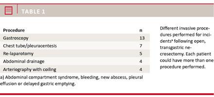 In total, 22 patients (44%) had one or more incidents (i.e. abdominal compartment syndrome, bleeding, new abscess, pleural effusion or delayed gastric emptying) where additional therapy was needed (Table 1).