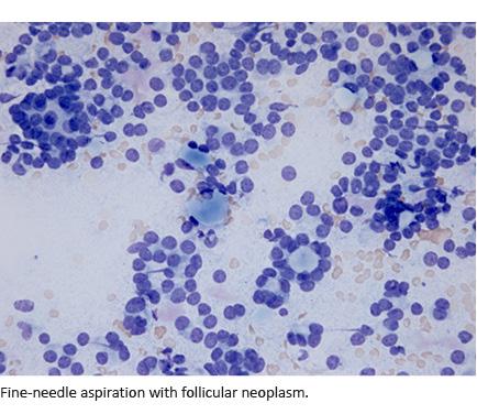 Palpable thyroid nodules are frequent with a prevalence of 5% in women and 1% in men, but only 7-15% of thyroid nodules are malignant [5]. Therefore, it is important to have an accurate preoperative diagnostic tool capable of discriminating between benign and malign thyroid nodules to reduce any unnecessary surgery. Fine-needle aspiration (FNA) is a cornerstone in the