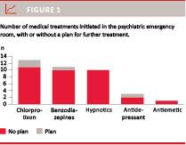 Ten patients had their usual medication changed, in eight cases this was decided by the senior psychiatrist on call. In no case was the maximum recommended dose exceeded. Ten patients were recommended to consult their GP or a private psychiatrist in regard to further medical treatment. A total of 29 patients were started on or given medical treatment, nine of these with two drugs. Thirteen were treated with chlorprotixen, 11 with benzodiazepines, ten with sleeping pills, three with antidepressants and one with antiemetics. Only in four cases were there plans for the (dis-)continuation of the instigated medical treatment (Figure 1). One of the 11 patients who received benzodiazepines was given chlordiazepoxide as a treatment for alcohol withdrawal; the remaining ten received it as an anxiolytic.