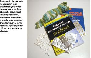 Another subject of this study that should give rise to further reflection is the use of medication in the PER. One could argue that initiating a treatment with an antidepressant in the PER is questionable, as the contact is often triggered by an acute crisis, and the insight the attending doctor has is more limited than that of the GP who may have known the patient for many years. On the other hand, it may be relevant to supply hypnotics in cases where an acute need to ensure sleep can prevent hospitalisation, or to decrease the dose of a drug if the patient experiences side-effects and cannot contact his or her GP. Naturally, addictive medication should be prescribed with caution, and so should sedative antipsychotics for non-psychotic anxiety. It is unsatisfactory that a clear treatment plan for medication was only found in four cases.