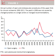 Since chronic ischaemia of the upper extremity is relatively rare, and only a few small studies are published on the results after revascularisation, we found it of interest to present this large population-based registry-study of patients treated for chronic ischaemia of the upper limb [1, 2].