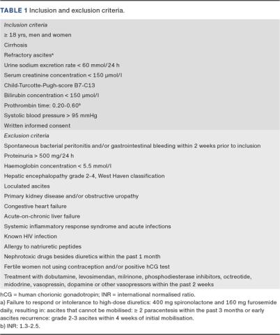 INTRODUCTION Ascites is a frequent complication to cirrhosis. When ascites becomes refractory to standard diuretic pharmacotherapy, patients are facing a median survival of less than one year and most likely a need for frequent hospitalisations due to large-volume paracentesis or complications. An unmet need exists for new and improved treatments of refractory ascites and the present study investigates the potential of the natriuretic peptide ularitide for this indication.