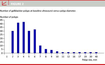 The aim of this study was to assess the size distribution of GB polyps and the outcome of US follow-up on small GB polyps.