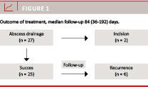 We observed no tendency in the recurrence of the origin of the abscesses, but it is possible that patients with axilla abscesses and hidradenitis would show a tendency toward recurrence, taking the chronic nature of this disease into consideration [10].