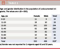Introduction: In 2008, 1.9-3.8 million undocumented migrants lived in Europe. We aimed to strengthen the evidence base on undocumented migrants’ health problems by describing characteristics of undocumented migrant patients in a Danish non-governmental organisation (NGO) health clinic.