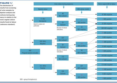 Screening for asymptomatic bacteriuria (ASB) in the first and second trimesters of pregnancy primarily serves to identify women who may benefit from antibiotics to reduce the risk of various perinatal outcomes [1]. A number of studies have demonstrated a relationship between ASB in pregnant mothers and the risk of premature delivery and/or lower birth weight, whereas other studies have failed to confirm this association [2-4]. However, maternal group B streptococci (GBS) bacteriuria in a pregnant woman is considered a marker for genital tract colonisation with these bacteria, which carries a risk of early onset of group B streptococcal disease (EOGBS) in their new-borns [5, 6].