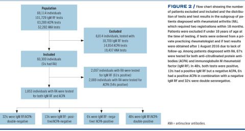 In a retrospective register-based population study, we evaluated if ACPA is a better predictor than IgM RF when RA is suspected in primary care. Furthermore, we examined the sensitivity and specificity of ACPA and IgM RF and calculated their PPV and NPV in real-life settings, both in primary care and at rheumatologic departments. Finally, we described ordering patterns of ACPA, IgM RF and concomitant ANA and investigated the benefit of repeated testing.