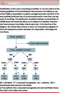 The post hoc analysis was performed on the presumption that irrespective of the clinical condition or compliance with SNC criteria, elevated levels of S100B would have triggered a CT of the brain or admission for observation.