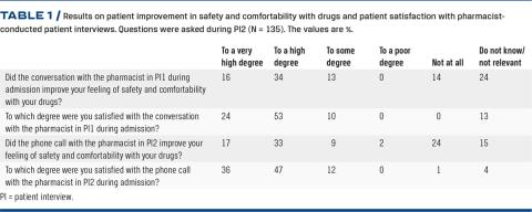METHODS: In this feasibility study, the intervention consisted of a multifaceted service including two patient interviews using a motivational interviewing approach. The interviews were held during admission and after discharge as a follow-up phone call. Patients were asked questions similar to those used in the LUP about the level of information they had received, and they self-evaluated their safety and comfortability with their drug treatment.