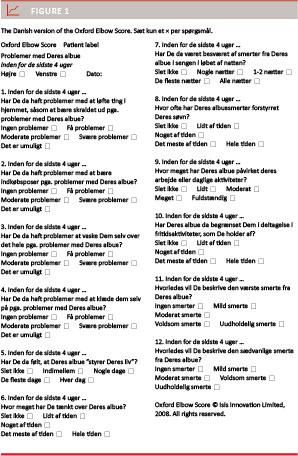 The Disability of the Arm, Shoulder and Hand questionnaire (DASH) is a 30-item questionnaire for measuring the symptoms and function in patients with musculoskeletal disorders of the upper limb. The DASH is measured on a 100-point scale with 100 being the worst and 0 being the best score [5, 6]. The Danish version of the DASH has previously been validated [7]. The DASH is not specific for the elbow.