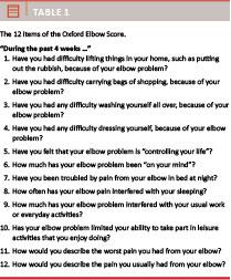 De Haan J, Goei H, Schep N et al. The reliability, validity and responsiveness of the Dutch version of the Oxford elbow score. J Orthop Surg Res 2011;6:39.