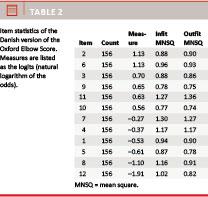 The original OES is valid, reliable and sensitive as a tool for assessing patients with elbow disorders [4, 10]. To ensure the validity for patients operated with TEA, we performed the Rasch analysis.