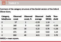The data fitted the stringent Rasch model with good infit MNSQ and outfit MNSQ values. This indicates that the data were neither underfit and thereby lacking predictability, nor overfit and thereby over-predictable of any of the items. The person separation index and the person reliability index were excellent. The item separation coefficient and the item reliability coefficient were also excellent supporting that the sample size was large enough to confirm the item difficulty hierarchy. The category rating scale of the D-OES worked well. The patients were able to discriminate the five levels of the items, and the Rasch Andrich threshold increased monotonically. PCA showed that the Danish version of the OES was multidimensional. The four items of the pain domain and the four items of the social psychological domain were recognized as separate domains. The original version of the OES was based on English culture. The purpose of this study was to translate the original OES into a Danish version including any necessary cross-cultural adaption to avoid misinterpretations. To ensure that respondents understand the questions as intended, it is important to translate using an accurate and approved method. We did not encounter questions that challenged national traditions or characteristics as the functional tasks, the social-psychological concerns and the perception of pain are not thought to be different between the UK and Denmark. The OES was therefore not subject to any cross-cultural adaption.