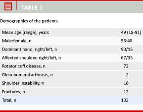 Patients with rotator cuff related disease made up the majority of the tested patient group. We believe that this cohort is representative because those suitable for surgery were included. Our results relate to a population of patients whose age ranged from 18 to 91 years (Table 1). Results indicate that the OSS may be used to follow a cohort over a longer period of time without the need for patients to show up in the clinic facilitating cost-effective follow up. However, the results of this study are not necessarily valid in other patient groups.