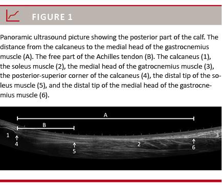 Valid length measurements of the different parts of the tendon are needed to investigate if rupture causes differential elongation of the Achilles tendon. An ultrasound (US)-based measurement of the length from the calcaneus to the medial head of the gastrocnemius muscle has previously been investigated at our clinic (Figure 1) [10]
