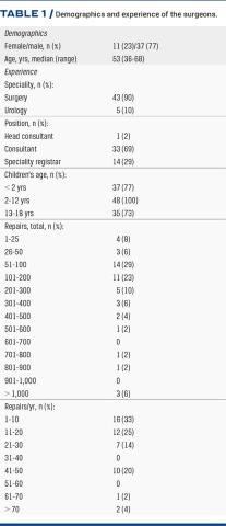 The first part of the questionnaire contained questions regarding the surgeons’ demographics (age, gender, position, and educational level) and surgical experience (years performing paediatric inguinal hernia repairs and estimated number of repairs performed annually and in total). The second part of the questionnaire contained questions to determine in which situations the surgeons would consider open and/or laparoscopic surgery: acute and/or elective repair, primary and/or recurrent hernias, unilateral and/or bilateral hernias, and male and/or female patients. The second part also contained questions regarding details of the surgical technique, which for laparoscopic repair included: number of ports, choice of transabdominal preperitoneal (TAPP) or total extraperitoneal repair, exploration and repair of a contralateral asymptomatic groin, and use of mesh. For open repair, the questions on surgical technique included: incision of the external fascia, identification of nerves, division of the cremaster muscle, handling of the hernia sac and use of mesh. Finally, surgeons were asked about reasons for avoiding laparoscopy in children, with the choices of: not enough advantages compared with open repair, lack of expertise, prolonged operative time, higher expenses, lack of equipment, fear of complications, patients’ preferences, open repair was standard at the department, and other. All questions were repeated for the age groups < 2, 2-12 and 13-18 years old. These intervals were chosen because children < 2 years old are only repaired in a few dedicated hospitals in Denmark, and because a recent publication recommended a different treatment for children who are 12 years old than for children who are 13-18 years old [10].