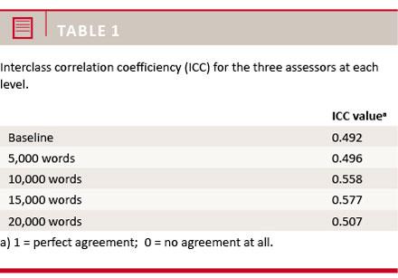 For the qualitative analysis, there was moderate agreement between the observers for all levels of added words (Table 1). The texts generally had acceptable meaning with a median Likert score of 5 (3-9), which improved after adding words. Here, individual comparisons pointed to 5,000 words as the minimum number of words needed (Figure 2).
