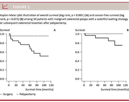 This preliminary, small and retrospective study suggests a higher overall survival but not cancer-specific survival after resection following polypectomy for malignant colorectal polyp. The indication for watchful waiting versus subsequent colorectal resection should be further investigated in large-scaled study taking relevant pathophysiological risk factors into consideration.