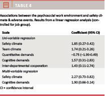 The associations between each of the psychosocial work environment and safety climate scales on one hand and the number of AEs (based on individual data) on the other were analysed using linear regression analyses. All analyses were controlled for job group. All analyses were performed in STATA 12.1.