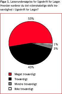 Det videnskabelige stof i Ugeskriftet bliver bedømt som troværdigt af 96 procent af de adspurgte. Hver femte læser kunne godt tænke sig, at der var mere videnskabeligt stof i bladet. Det skal sammenholdes med, at 75 procent mener, at vægtningen af det videnskabelige stof er passende.