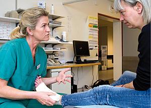 »Hun tager sig af småskader og småskrammer og kan lægge en gips, suturere etc. med backup fra en speciallæge på skadestuen i Viborg. Bor man i Glyngøre og har fået en finger i klemme, kan man her få lagt en skinne på og derpå tage hjem. Men har man fået sin finger klemt af og kommer her, er man ilde stedt. Det kan vi ikke gøre noget ved i dagtid. Jo, vi kan give noget smertestillende. Og jo, vi har rammeordinationer på udvalgte præparater og indikationer, således at behandlersygeplejerskerne kan påbegynde en behandling af typiske skader, som selvhenvendere kommer med - f.eks. bistik og brystsmerter«.