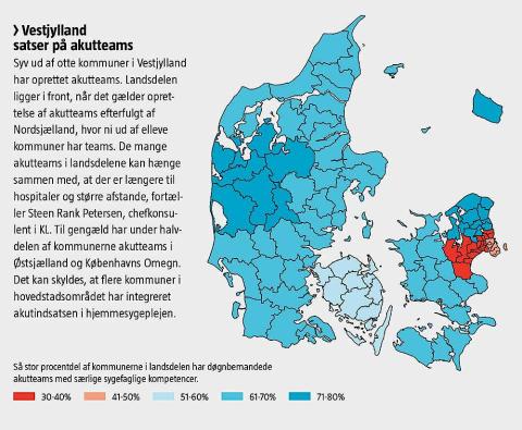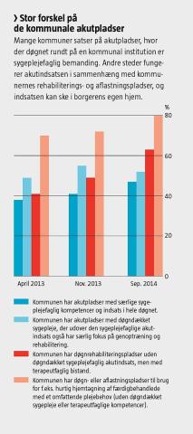 Kommuner satser i stigende grad på akutteams, og det betyder nye arbejdsopgaver til de praktiserende læger. I september måned sidste år havde 44 pct. af kommunerne implementeret forebyggende akutteams. Derudover forventer 24 pct. af kommunerne at have akutteams på plads i løbet af foråret 2015.