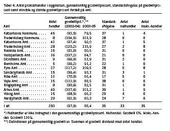 Der er fortsat praksis, der handles til fuld pris, men færre end i starten af perioden. De fleste maks.-handler har i lighed med sidste år fundet sted i Frederiksborg Amt, Århus Amt og Fyns Amt. Disse amter har nogle af de fleste handler og også det højeste goodwillniveau. Sværest ser det fortsat ud i Nordjyllands, Storstrøms, Viborg og Ribe Amter (Tabel 4).