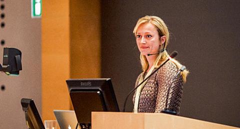 Kirstine Kirkegaard har netop fået overrakt 50.000 kr. som vinder af Fogh-Nielsens Legat 2013. Hæderen fik hun ved festmiddagen på årets ph.d.-dag på Aarhus Universitet, efter at hun - med noget våde håndflader på sit manuskript - havde guidet et fyldt auditorium igennem sine forskningsresultater i et kort komprimeret foredrag tidligere på dagen: