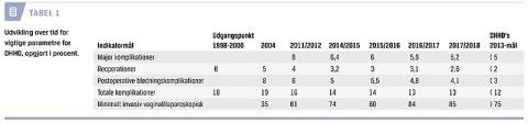På trods af faldende andele i totale komplikationer og major komplikationer opfyldes standarderne ikke endnu.