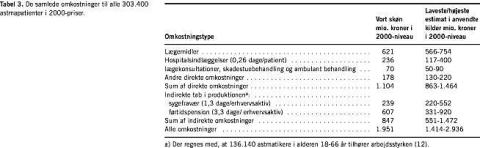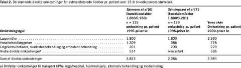 Diskussion: Da vort skøn er overensstemmende med resultaterne fra andre danske og udenlandske kilder, lader det formode, at de estimerede omkostninger er tæt på de faktiske. Omkostningerne må forventes at stige, da astmaprævalensen er stigende.