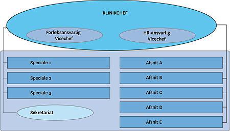 I hver klinik har hvert speciale og hvert afsnit sin egen leder, der indgår i den udvidede klinikledelse.
