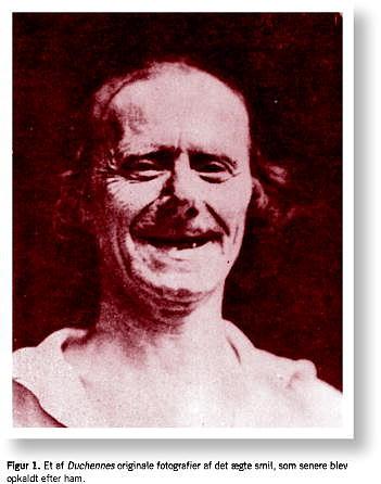 Kun den ene form for latter (ikkeDuchenne) synes at være forbundet med social aggression. Den styres af hjernebarkens motoriske centre og kan dermed - ligesom det falske smil - delvist kontrolleres bevidst, selv om den også forekommer spontant. Den ægte latter, Duchenne-latteren, udløses derimod af subkortikale og limbiske strukturer og optræder i forbindelse med positive følelser - også over for andre. Den kan undertrykkes, men ikke udløses ved bevidst anstrengelse, og den kan derfor ses som et oprigtigt udtryk for vores følelsestilstand. Denne form for latter er sandsynligvis den oprindelige, og den har spor langt tilbage til vores primatforfædres sociale liv, mens ikkeDuchenne-latteren rent fylogenetisk ser ud til at være en senere afledning heraf, som er opstået i takt med hjernebarkens stigende kontrol over hjernens nedre lag [1].