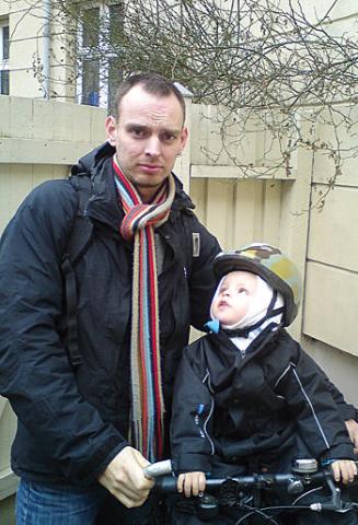 15.00 Op på cyklen - det regner igen - og af sted for at hente sønnen i vuggestuen.