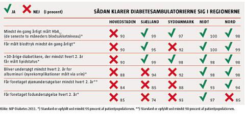 Konkret betyder det eksempelvis, at man i hovedstaden ikke tager de årlige blodprøver, der viser blodsukkerværdien i de seneste to måneder, eller måler lipidstatus hvert andet år for mindst 95 procent af diabetikerne i regionen. Sådan som det sker i de øvrige regioner.
