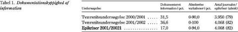 Tabel 1 viser hyppigheden af, at den information, der er givet til patienten, er anført henholdsvis i journalmaterialet og i epikrisen.