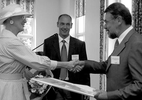 Gigtforeningens protektor, dronning Margrethe (tv.) Kristian Stengaard-Pedersen (th.),i midten Søren Jacobsen, formand for Gigtforeningens Forskningsråd. Professor, overlæge Kristian Stengaard-Pedersen, Reumatologisk Afdeling U på Århus Universitetshospital, modtog 2. august Dronning Ingrids Forskerpris på 100.000 kr. Kristian Stengaard-Pedersen får prisen for sin mangeårige forskningsindsats inden for reumatologi, især inden for leddegigt og slidgigt.
