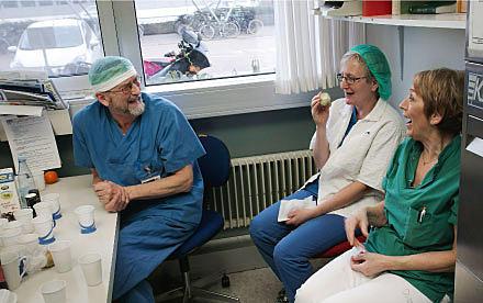 Klokken 8.45 er dagens første operation således aflyst for Mogens Hüttel, og der sendes besked op på sengeafsnittet om, at næste patient skal gøres klar.